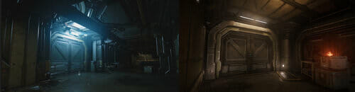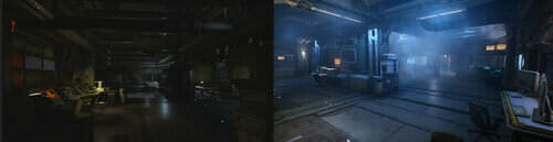 Gli effetti di illuminazione sono molto più realistici ed hanno fornito agli artisti maggior controllo sugli ambienti. Ogni singola luce è ora fisicamente calcolata in termini di volume e di intensità: in precedenza, la maggior parte delle luci erano semplici punti luminosi, i quali generavano una falsa superficie luminosa che non era veramente modellata dai PBR. Adesso, le superfici calcolano e fanno rimbalzare la luce in maniera molto più accurata. Potete vedere nelle immagini di prima e dopo quanto sia grande la differenza a seguito dell’introduzione di questi cambiamenti.