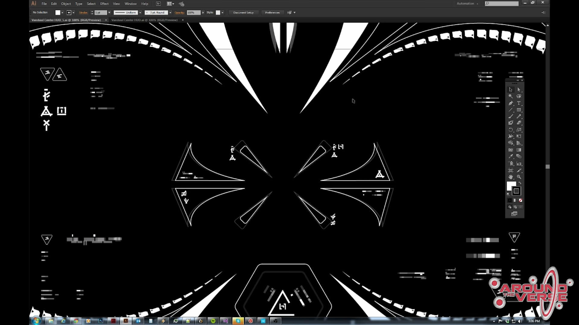 L’obiettivo di questo progetto era di cercare di fare in modo che la UI, la forma del linguaggio della UI, fossero molto aggressivi. Questo perché le navi Vanduul hanno un aspetto molto organico, con linee molto aggressive. Ho fatto in modo che tutto fluisse vero il centro dello HUD, per cui ci sono tutte queste differenti, assurde forme appuntite che si muovono verso il centro, come se stessero bersagliando qualcosa e si stessero concentrando su un punto specifico. Per cui con i Vanduul abbiamo cercato di utilizzare queste belle forme appuntite, quasi tribali, perché questo è l’aspetto che Chris vuole per il linguaggio Vanduul.