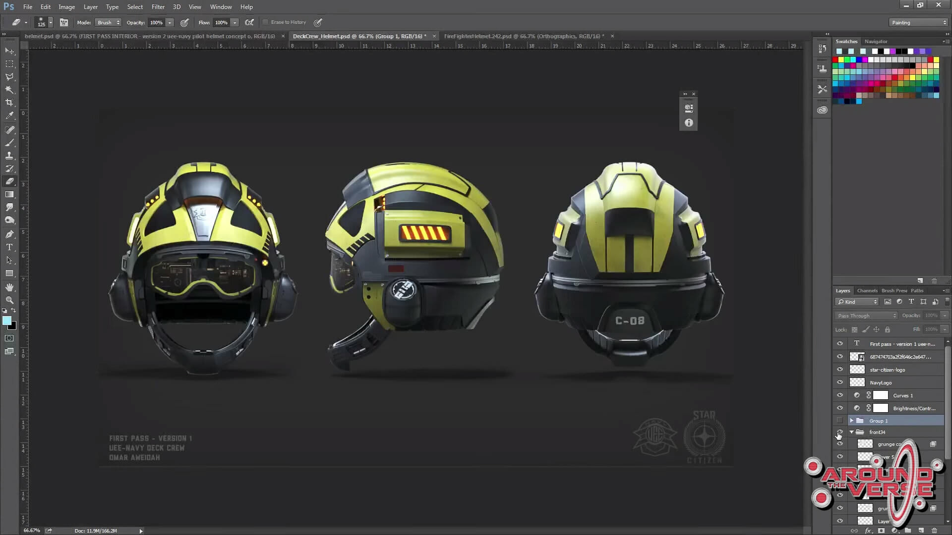– Terminata questa fase, e dopo aver ricevuto l’approvazione dell’elmetto, passiamo a lavorare sull’equipaggiamento del personaggio, oppure su un equipaggiamento che era stato progettato in precedenza, che a volte ha già una bozza di elmetto, se non addirittura una versione completa di questo, e ci basiamo su quest’ultimo per sviluppare il resto dell’equipaggiamento. A volte, invece, ci ritroviamo in una situazione tale che io e Jeremiah dobbiamo discutere per capire come procedere con il lavoro.