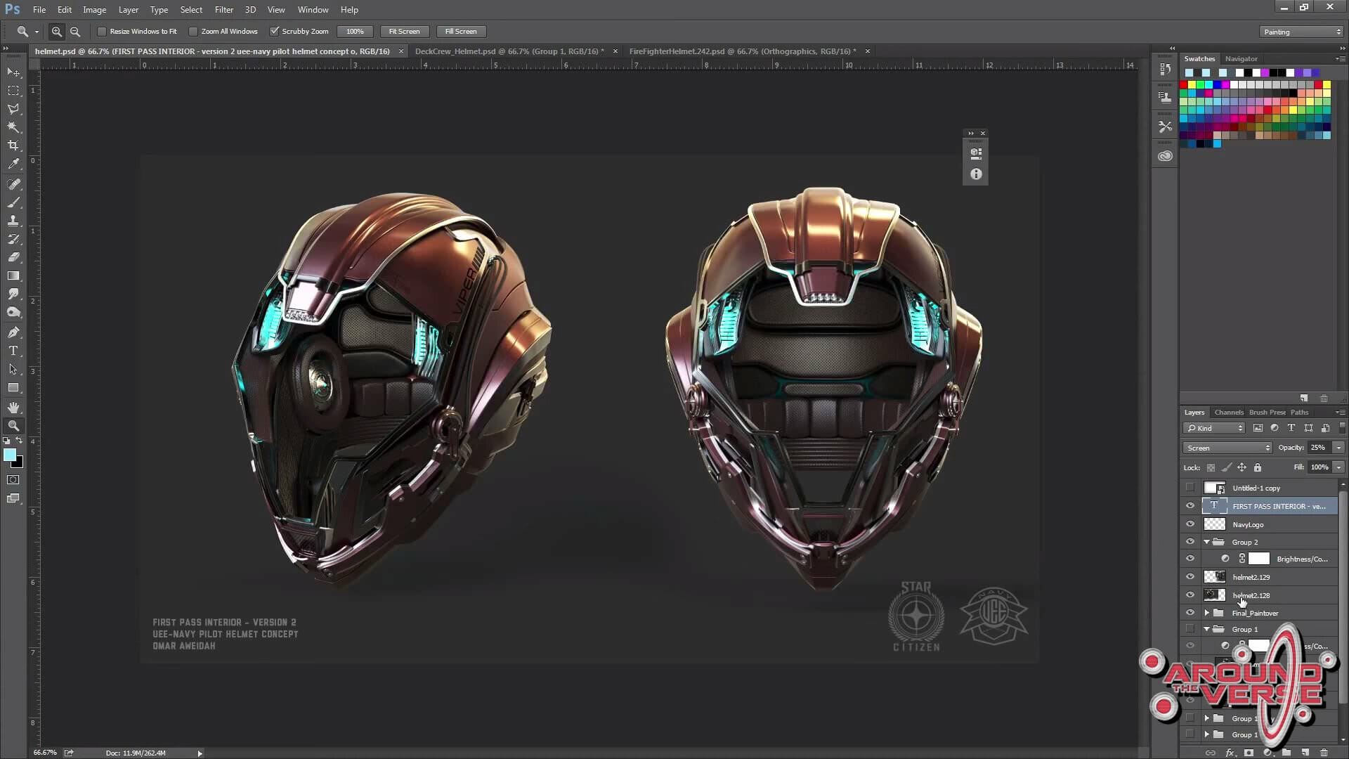 – Jeremiah compie un ottimo lavoro nell’assemblarli utilizzando la loro struttura di base: in genere lui prende l’elmetto ed effettua una serie di scatti da vari angoli per poi modificare tutto con photoshop. Il risultato è piuttosto interessante, ed in questo modo abbiamo un progetto completo di tutto: gli interni, l’esterno dell’elmetto e persino i vestiti coordinati.