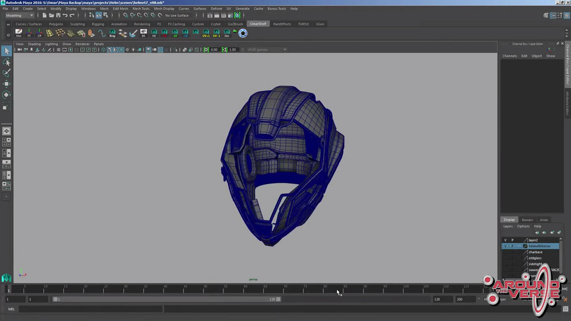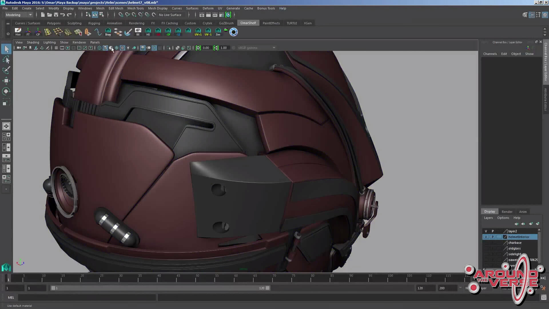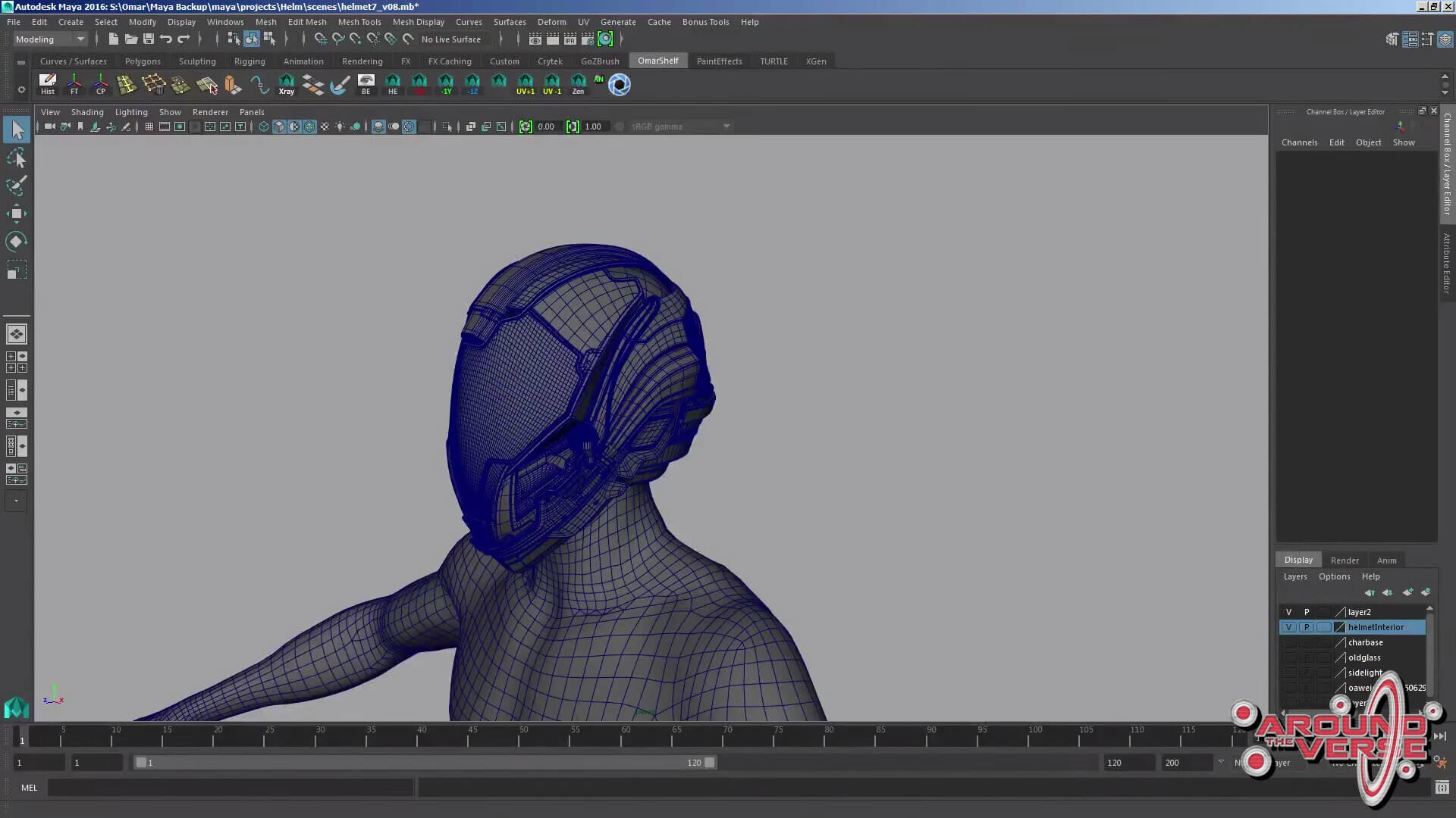 – Dunque, io e Gurmukh usiamo Maia, e come prima cosa io solitamente inizio ad abbozzare le forme generali utilizzando o Zbrush o Maia, per poi assicurarmi che questa primissima versione sia di dimensioni compatibili con il modello base del personaggio maschile. Come potete vedere qui, l’elmetto calza a meraviglia sulla testa del nostro personaggio. Quindi, persino quando realizziamo il progetto artistico preliminare, il materiale che passiamo ai modellisti per la realizzazione dell’elmetto è già delle dimensioni adatte, e cerchiamo di fare in modo che la sua struttura generale sia il più pulita possibile.
