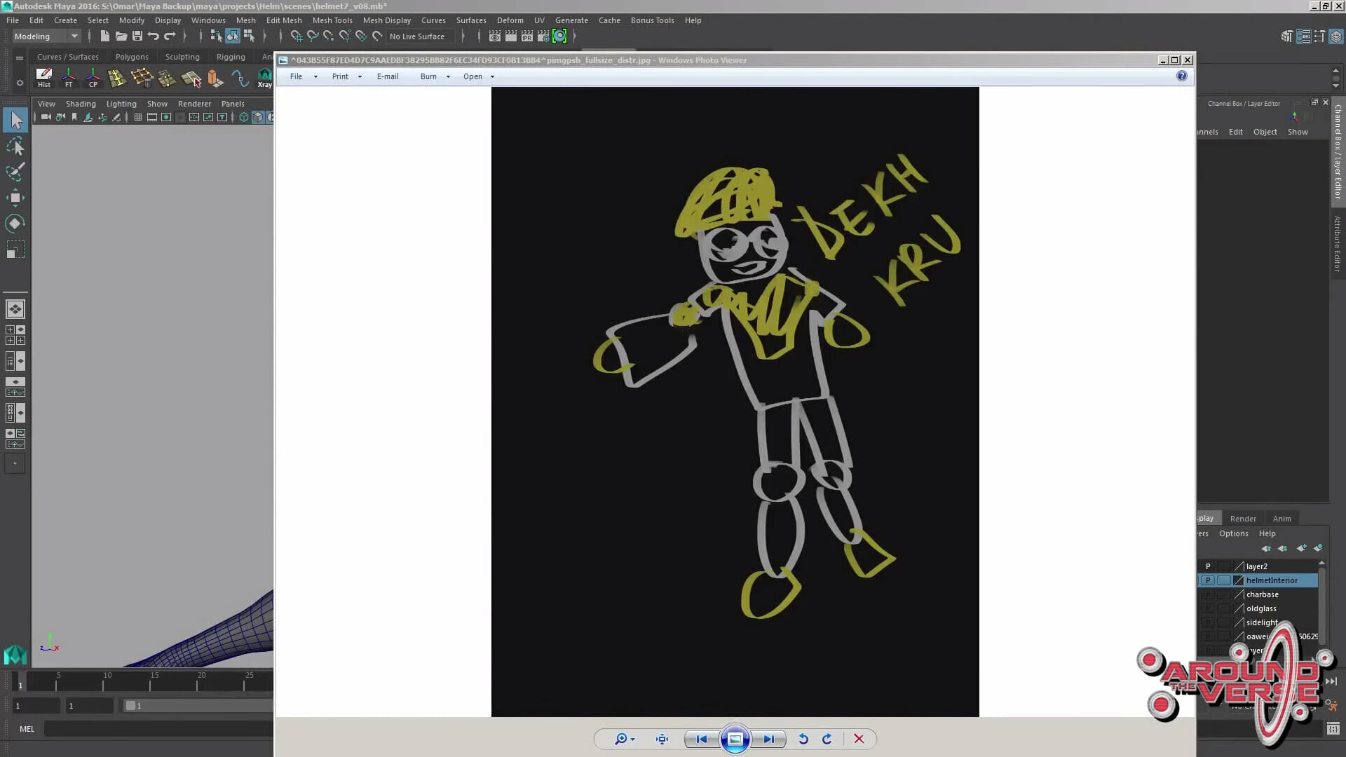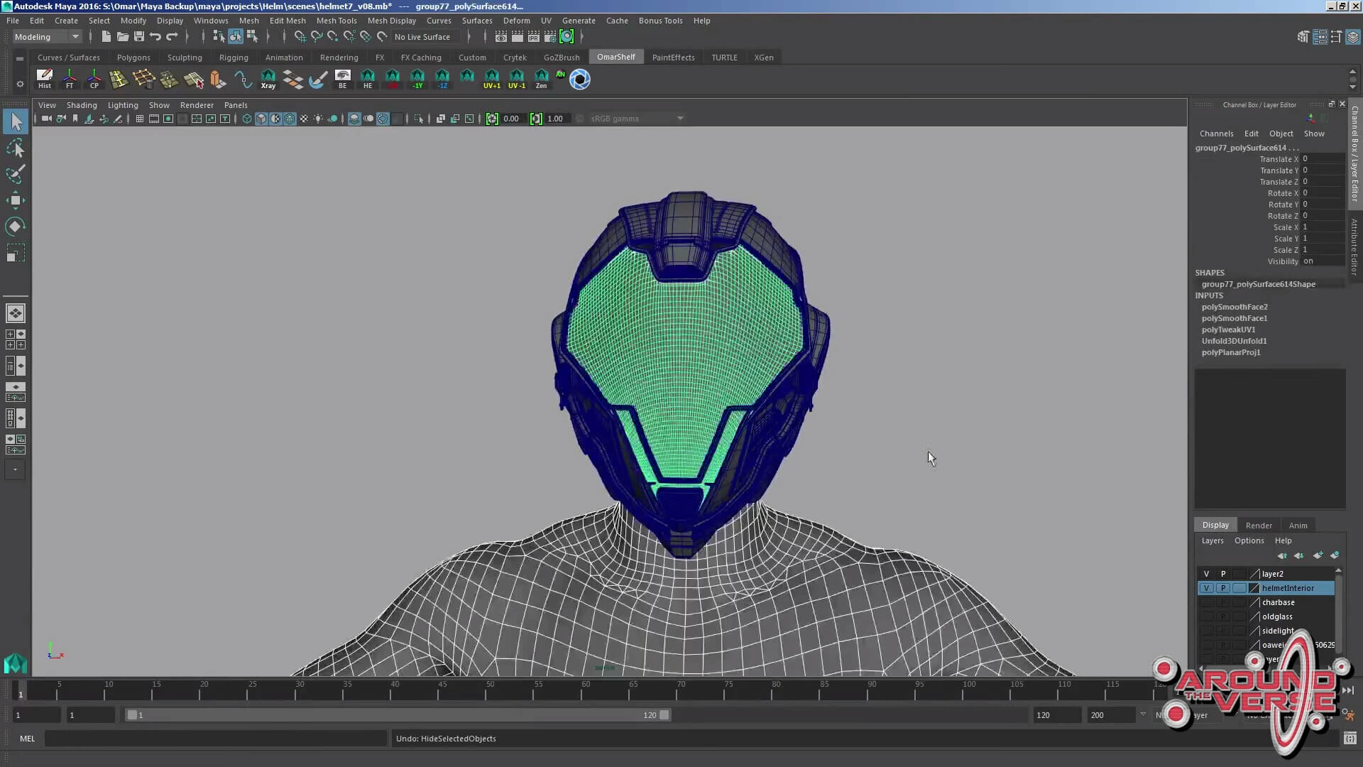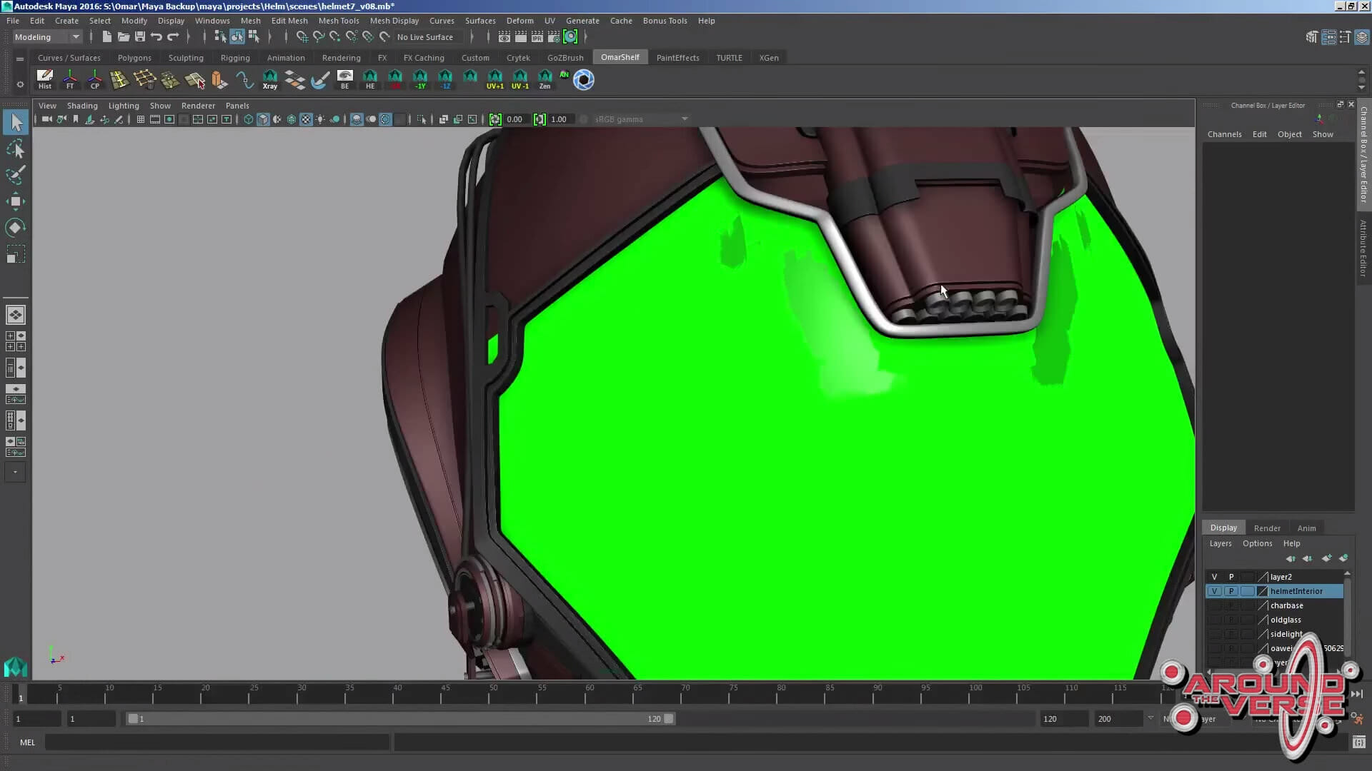– Dunque, io e Gurmukh usiamo Maia, e come prima cosa io solitamente inizio ad abbozzare le forme generali utilizzando o Zbrush o Maia, per poi assicurarmi che questa primissima versione sia di dimensioni compatibili con il modello base del personaggio maschile. Come potete vedere qui, l’elmetto calza a meraviglia sulla testa del nostro personaggio. Quindi, persino quando realizziamo il progetto artistico preliminare, il materiale che passiamo ai modellisti per la realizzazione dell’elmetto è già delle dimensioni adatte, e cerchiamo di fare in modo che la sua struttura generale sia il più pulita possibile.