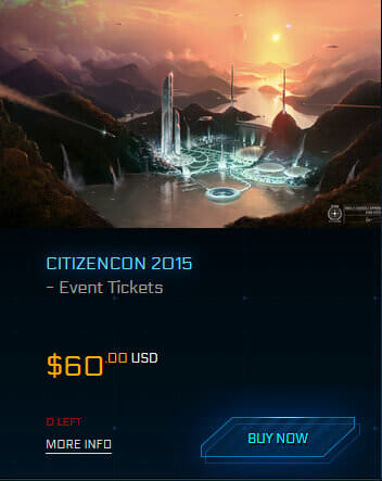 I biglietti del CitizenCon, disponibili qui sotto, costano £40 per aiutare a coprire le spese dell’evento. I £40 copriranno inoltre il pasto che sarà servito nel corso dell’evento. Vi daremo spettacolo E cena! I registranti devono essere maggiorenni. Gli eventi di Star Citizen sono pianificati esclusivamente per i backers! I biglietti potranno essere stampati poco prima del giorno dell’evento, una mail sarà spedita ai partecipanti come promemoria. Potete vedere il vostro biglietto QUI dopo averlo comprato.