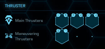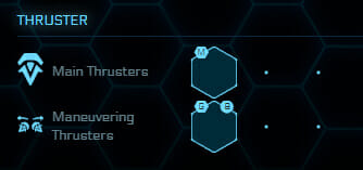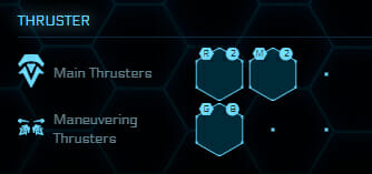 Nella vecchia matrice questi propulsori erano indicati tra quelli di manovra, mentre da ora in poi verranno considerati come Propulsori Primari, dal momento che, in effetti, sono degli elementi critici della nave. Non ha molto senso montare il propulsore più grosso in circolazione, se poi non riesci a fermarti in tempo! Solitamente sono montati a gruppi di due, ma in alcune navi ce ne potrebbero essere di più o di meno a seconda del loro ruolo, soprattutto in quei casi in cui il malfunzionamento o il danneggiamento di anche uno solo di essi potrebbe causare dei seri problemi durante le manovre di decelerazione.