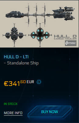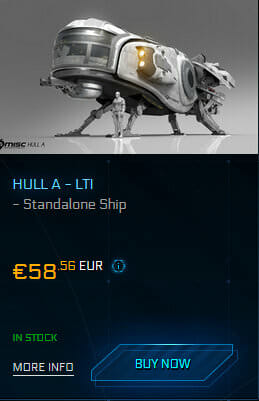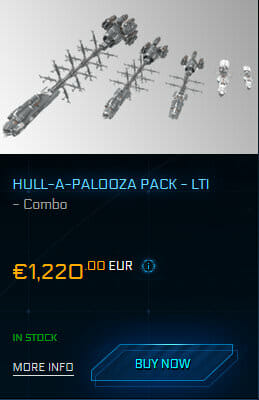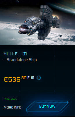 Per la prima volta, abbiamo inserito nello store la serie Hull per una vendita limitata e preliminare. Questo vuol dire che il progetto della nave soddisfa i nostri requisiti di qualità, ma non è ancora pronta per comparire nel vostro Hangar o per combattere nell’Arena Commander. Questa vendita include l’Assicurazione a Vita sullo scafo della nave ed un paio di oggetti decorativi per il vostro Hangar. In uno dei prossimi aggiornamenti inseriremo un poster della Hull, ed una volta che il modello in-game sarà pronto vi verrà dato anche un modellino della nave! In futuro, il prezzo della Vanguard aumenterà e l’offerta non includerà più l’Assicurazione a Vita o questi extra.