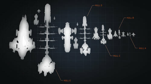 Dalla Hull A per la singola persona, alla super massiva nave da trasporto su vasta scala Hull E, c’è una Hull per ogni tipologia di lavoro. Ogni nave include una cabina manovrata, un’unità di salto ed un albero telescopico di alloggiamento cargo. Quando carico, l’albero si espande per permettere l’aggancio dei pallet di carico; quando scarico, l’albero si ripiega su stesso per permettere viaggi più rapidi ed una maggiore manovrabilità.